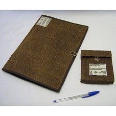 PASTA (31,5X23 CM) TIPO ENVELOPE, COM FORRO EM TECIDO MARROM, E PARTE EXTERNA EM FIBRA VEGETAL. POSSUI DIVISÓRIA INTERNA EM 'L'. NA FRENTE, ETIQUETA EM TECIDO, CONTENDO TEXTO EM PORTUGUÊS E TRADUÇÃO EM INGLÊS 'A GARANTIA DO DESENVOLVIMENTO SUSTENTÁVEL ESTÁ NO EQUILÍBRIO DO PATRIMÔNIO NATURAL / ANIBAL PESSOA PICANÇO / SECRETARY OF STATE OF ENVIROMENT' E LOGOMARCA DO GOVERNO DO PARÁ'. ACOMPANHA ESTOJO (12,5X10,5X2 CM) EM MESMO MATERIAL, COM MESMA ETIQUETA.