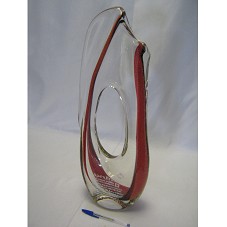 ESCULTURA (55,5 CM) CONFECCIONADA EM CRISTAL, COM DETALHE EM VERMELHO. POSSUI UMA ABERTURA NA PARTE SUPERIOR, COMO UM VASO, E É VAZADA NO CENTRO. NA PARTE FRONTAL, PRÓXIMO À BASE, A INSCRIÇÃO 'APEX BRASIL / ... / HOMENAGEM DOS MESTRES VIDREIROS ANTÔNIO CARLOS E PAULO MOLINARI / AO PRESIDENTE LULA / PELA SERIEDADE COM A CLASSE EMPRESARIAL E INCENTIVO AO PRODUTO BRASILEIRO DE EXPORTAÇÃO / DEZEMBRO DE 2009 / RIO DE JANEIRO-RJ'. POSSUI SELO 'SÃO MARCOS CRISTAIS' E ASSINATURA 'MOLINARI'. ACOMPANHA FOLDER DA FÁBRICA.