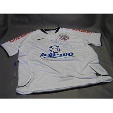 CAMISA (TAM EG) OFICIAL DO TIME DE FUTEBOL 'SPORT CLUBE CORINTHIANS PAULISTA', COMEMORATIVA AOS 100 ANOS DO CLUBE. CAMISA DE NÚMERO '100' E NOME 'MARCELINHO'. NA FRENTE, DEDICATÓRIA MANUSCRITA 'AO PRESIDENTE LULA COM AMOR E CARINHO / MARCELINHO'. POSSUI ETIQUETA DE PRODUTO OFICIAL DO TIME.
