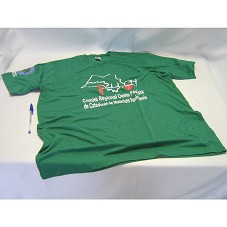 CAMISETA EM MALHA VERDE, DE MANGA CURTA. NA FRENTE, ESTAMPA COM LOGOMARCA DO 'COMITÊ REGIONAL OESTE PAULISTA DE CATADORES DE MATERIAIS RECICLÁVEIS'. ATRÁS E NAS MANGAS, LOGOMARCA DO 'MOVIMENTO NACIONAL DOS CATADORES DE MATERIAIS RECICLÁVEIS', E A INSCRIÇÃO 'MNCR: PRESENTE SEMPRE, SEMPRE, SEMPRE'.