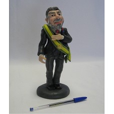 ESCULTURA (22 CM) EM BISCUIT REPRESENTANDO O PRESIDENTE LULA CARICATURADO, USANDO A FAIXA PRESIDENCIAL. NO FUNDO DA PEÇA, ETIQUETA COM DADOS DO ARTISTA. ACOMPANHA TEXTO SOBRE O AUTOR. ACONDICIONADA EM CAIXA DE PAPELÃO BRANCA, COM A INSCRIÇÃO 'PROPEG' NA FRENTE.