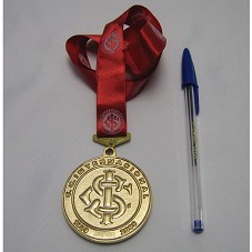 MEDALHA COMEMORATIVA AO CENTENÁRIO DO SPORT CLUB INTERNACIONAL (60 MM) CONFECCIONADA EM METAL E BANHADA A OURO. NO ANVERSO, ESCUDO OFICIAL DO TIME E A INSCRIÇÃO 'S.C. INTERNACIONAL / 1090 2009 / 453/200'. NO REVERSO, RÉPLICAS DOS TRÊS TROFÉUS GANHOS E A INSCRIÇÃO 'CAMPEÃO DE TUDO'. PEÇA NUMERADA EM '453/500'. ACOMPANHA CERTIFICADO. ACONDICIONADA EM ESTOJO FORRADO DE VELUDO VERMELHO.