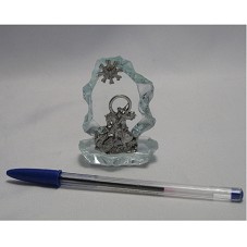 ESCULTURA (4x3 CM) BIDIMENSIONAL, CONFECCIONADA EM METAL PRATEADO, IMAGEM DE SÃO JORGE MONTADO EM SEU CAVALO, SOBRE O DRAGÃO, FIXADA EM BASE DE VIDRO (5,5X4,5X1 CM), COM BORDAS LASCADAS. ATRÁS DA IMAGEM, OUTRA PLACA DE VIDRO (6X5X1 CM) ONDE HÁ MEDALHA DO DIVINO ESPÍRITO SANTO COLADA, TAMBÉM EM METAL PRATEADO. NA PARTE POSTERIOR DA IMAGEM DE SÃO JORGE, A INSCRIÇÃO 'FERNANDA COLLECTIONS'.