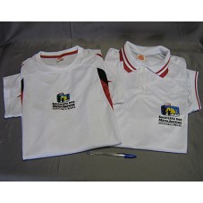 DUAS CAMISETAS. A PRIMEIRA (TAM G) EM MALHA BRANCA, DE MANGA CURTA. POSSUI DETALHES EM VERMELHO E PRETO. NA FRENTE, BORDADO COM NOME E LOGOMARCA DO 'SINDICATO DOS METALÚRGICOS / SOROCABA E REGIÃO'. A SEGUNDA (TAM GG), CAMISA PÓLO, EM MALHA BRANCA, DE MANGA CURTA, COM BOTÕES PRÓXIMOS À GOLA. NA FRENTE, ESTAMPA COM NOME E LOGOMARCA DO SINDICATO. NAS MANGAS, BANDEIRA DO BRASIL E 'WWW.SMETAL.ORG.BR'.