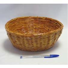 CESTA (8X25X24,5 CM) CONFECCIONADA COM TIRAS DE PAPEL ENROLADAS E TRANÇADAS ENTRE SI. PINTADA E ENVERNIZADA EM TOM DE MARROM ALARANJADO.