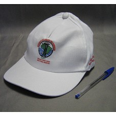 DOIS BONÉS IGUAIS, CONFECCIONADOS EM TECIDO BRANCO. NA FRENTE, LOGOMARCA DO 'MOVIMENTO DOS ATINGIDOS POR BARRAGENS' E A INSCRIÇÃO 'BRASIL / ÁGUAS PARA VIDA NÃO PARA MORTE'. NAS LATERAIS, 'MAB-NE' E 'ÁGUA E ENERGIA, NÃO SÃO MERCADORIAS'.
