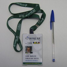 CRACHÁ (8,5X5,2 CM) DA EMPRESA 'CEITEC S.A. SEMICONDUTORES', CONFECCIONADO EM PLÁSTICO ENRIGECIDO, NA COR BRANCA, EM NOME DO PRESIDENTE DA REPÚBLICA, 'LUIZ INÁCIO LULA DA SILVA'. POSSUI FOTOGRAFIA E NOME DO PRESIDENTE. ACOMPANHA PORTA-CRACHÁ (8,7X5,7 CM) EM PLÁSTICO TRANSPARENTE, E CORDÃO EM FITA DE TECIDO VERDE, COM NOME DA EMPRESA ESTAMPADO E LOGOMARCA DO GOVERNO FEDERAL.