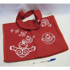 SACOLA, TIPO ECOBAG, EM TECIDO VERMELHO, COM ALÇA MÉDIA. POSSUI ESTAMPA COM DESENHO ESTILIZADO DE UMA PESSOA SORRINDO, DE BRAÇOS ABERTOS, E A INSCRIÇÃO 'CARNAVAL DE SALVADOR 2010 / O CORAÇÃO DO MUNDO BATE AQUI'.