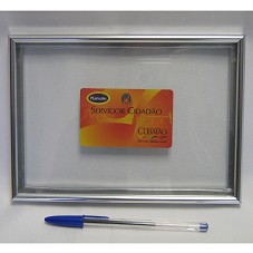 CARTÃO (5,5X8,5 CM) 'SERVIDOR CIDADÃO', DA PREFEITURA DE CUBATÃO, CONFECCIONADO EM PLÁSTICO RÍGIDO, NA COR LARANJA. NA FRENTE, A INSCRIÇÃO 'SERVIDOR CIDADÃO', E LOGOMARCA E BRASÃO DO GOVERNO MUNICIPAL. ATRÁS, TARJETA DE CÓDIGO E INFORMAÇÕES SOBRE O CARTÃO. EMOLDURADO EM QUADRO (15,5X21,5 CM) COM MOLDURA EM ALUMÍNIO E TAMPO DE VIDRO.