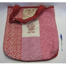 SACOLA (48X42 CM) CONFECCIONADA EM TECIDO EM TONS DE VERMELHO, BRANCO E ROSA, COM ALÇA CURTA. POSSUI TRABALHO DE PATCHWORK, E BORDADO COM FIGURA DE UMA CRIANÇA NA PARTE FRONTAL.