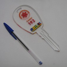 DUAS CHAVES EM ACRÍLICO (17X6,5 CM CADA). POSSUEM A LOGOMARCA DO 'SAMU' E DO GOVERNO FEDERAL. E A INSCRIÇÃO 'SAMU 192'. ACONDICIONADAS, SEPARADAMENTE, EM ESTOJO FORRADO DE VELUDO PRETO. NA PARTE INTERNA DO ESTOJO, PLACA METÁLICA CONTENDO A INSCRIÇÃO '40 ANOS ROTAN'.