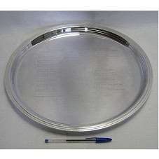 BANDEJA CIRCULAR (39X39 CM), CONFECCIONADA EM PRATA, COM BORDAS ELEVADAS. POSSUI, NO PRATO, A INSCRIÇÃO 'HOMENAGEM DO CONSELHO DOS EMBAIXADORES ÁRABES EM BRASÍLIA A S.E. O SENHOR LUIZ INÁCIO LULA DA SILVA, PRESIDENTE DA REPÚBLICA FEDERATIVA DO BRASIL / (NOME DOS EMBAIXADORES) / BRASÍLIA, 25 DE MARÇO DE 2010'. ACONDICIONADA EM CAIXA FORRADA DE PAPEL VERDE, COM NOME DO FABRICANTE NA TAMPA.