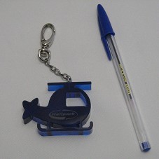 CHAVEIRO (4,5X6 CM) CONFECCIONADO EM ACRÍLICO AZUL, NO FORMATO DE UM HELICÓPTERO. POSSUI A INSCRIÇÃO 'HELIPARK', EM UMA LATERAL; E, NA OUTRA, ETIQUETA COM O NÚMERO DA FREQUÊNCIA E DO TELEFONE. POSSUI CORRENTE COM MOSQUETÃO (7,5 CM) CONFECCIONADOS EM METAL PRATEADO. ACONDICIONADO EM CAIXA DE PAPELÃO.