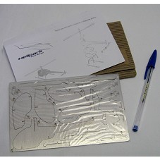 PLACA METÁLICA (11X17 CM) CONTENDO QUINZE PEÇAS, EM MESMO MATERIAL, PARA SEREM DESTACADAS E MONTADAS EM UM HELICÓPTERO. EM UMA DAS PEÇAS, A INSCRIÇÃO 'HELIPARK TÁXI AÉREO'. ACOMPANHA FOLHA COM INSTRUÇÃO DE MONTAGEM. ACONDICIONADA EM ENVELOPE DE PAPELÃO, COM NOME DA EMPRESA.