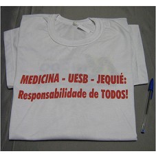 CAMISETA (TAM GG) EM MALHA BRANCA, DE MANGA CURTA. NA FRENTE, EM VERMELHO, A INSCRIÇÃO 'MEDICINA - UESB - JEQUIÉ: RESPONSABILIDADE DE TODOS'.
