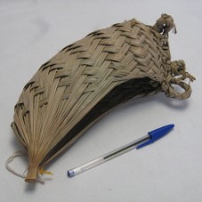 CESTO INDÍGENA (9,5X26X8 CM), TRANÇADO EM FOLHA DE BANANEIRA, NO FORMATO DE UMA CANOA.