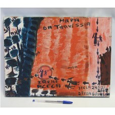 QUADRO (30X40 CM) SEM MOLDURA. PINTURA SOBRE TELA, COM CENTRO EM TONS DE VERMELHO, LATERAL ESQUERDA EM VERDE ESCURO, COM DESENHOS DE ÁRVORES. POSSUI ALGUMAS SETAS INDICANDO CAMINHO E DESENHO DE UMA MULHER DE MÃO DADA COM UMA CRIANÇA PASSANDO POR ESTE. NA PARTE SUPERIOR, A INSCRIÇÃO 'MAPA DA TRAVESSIA'. NA INFERIOR, '1 TELA 24/12/2008 / 2 TELA 6/04/010'. NO CENTRO, 'IRENE / ACECA'. QUADRO CHEGOU EM CAIXA DE PAPELÃO, ONDE HAVIA A INSCRIÇÃO 'ACECA / CNPJ 10.390.320/0001-59'.