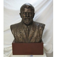 ESCULTURA (68X66X31 CM) CONFECCIONADA EM BRONZE. BUSTO EM HOMENAGEM AO PRESIDENTE LULA, REPRESENTANDO O MESMO. FIXADA EM BASE METÁLICA (23X56X33 CM), DE COR VINHO COM TERRACOTA, ONDE NA FACE FRONTAL HÁ INSCRIÇÃO EM IDEOGRAMAS CHINESES. PEÇA INTEGRANTE DA 'WORLD CELEBRITY SERIES', DE AUTORIA DO ESCULTOR CHINÊS YUAN XIKUN.