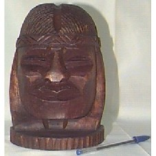 ESCULTURA (14X9,5X20 CM) ENTALHADA EM MADEIRA, FIGURA DE UM ROSTO INDÍGENA. ACOMPANHA CARTÃO DE VISITA DO REMETENTE 'DR. MARCO ANTONIO ARAUJO DOS SANTOS / MÉDICO CIRUJANO / PARAGUAY', ATRÁS, MANUSCRITO, 'QUE A LUZ DO ESPIRITO SANTO SEMPRE ESTEJA SOBRE VOCÊ E TODA SUA FAMILIA, PARA QUE VOCÊ POSSA ATINGIR TODOS OS SEUS OBJETIVOS NO SEU GOVERNO / MARCOS A. ARAUJO / 14/08/2003'. NO ENVELOPE, 'P/ PRESIDENTE LUIZ INACIO LULA DA SILVA' E 'MARCOS ANTONIO ARAUJO DOS SANTOS'.