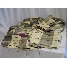 DOIS PAINÉIS EM TAPEÇARIA(240X229 CM) E (236X129 CM), CONFECCIONADOS EM LÁ (PÊLO), SENDO UM PAINEL XADREZ NAS CORES CINZA E BEGE, COM FAIXA LILÁS NAS EXTREMIDADES E O OUTRO PAINEL XADREZ NAS CORES CINZA E BEGE, COM FAIXA MARROM NAS EXTREMIDADES. OS DOIS POSSUEM SÍMBOLOS E FIGURAS GEOMÉTRICAS NA COR PRETA E FRANJA ESPAÇADA NAS EXTREMIDADES.