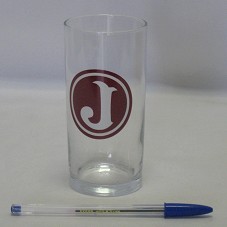 COPO DE VIDRO (13X6,4X6,4 CM), TIPO LONGO, COM EMBLEMA DO TIME, A LETRA 'J', ESTAMPADA NA FRENTE.