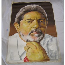 PINTURA (120X79 CM) SOBRE TELA, RETRATANDO O PRESIDENTE LULA, EM PLANO AMERICANO, SOBRE FUNDO DE TOM MARROM, VESTIDO DE CAMISA BRANCA, COM GRAVATA VERMELHA, E A MÃO ESQUERDA SOB O QUEIXO. NO CANTO INFERIOR DIREITO, ASSINATURA DO ARTISTA 'EMANUEL 2009'. NA PARTE POSTERIOR, A INSCRIÇÃO 'CÍCERO EMANUEL DO CEARÁ / 88115320'.