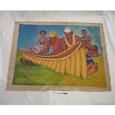 PINTURA (100X77 CM) SOBRE VELUDO, RETRATANDO UM GRUPO DE AFRICANOS (TRÊS HOMENS E UMA MULHER) TOCANDO INSTRUMENTOS MUSICAIS. TODOS ESTÃO SENTADOS. PINTURA SOBRE FUNDO AZUL E VERDE AMARELADO. NO CANTO INFERIOR ESQUERDO, ASSINATURA DA ARTISTA 'MALU - 2010'. NA PARTE POSTERIOR, A INSCRIÇÃO 'ATELIER: MALU-ART CRIAÇÃO / TÍTULO: MARIMBEIROS / TELEF: 934273 705/921815433 / EMAIL: M3_JACKS @HOTMAIL.COM / [email protected] / LUANDA/ANGOLA'.