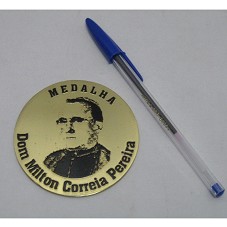 MEDALHA DOM MILTON CORREIA PEREIRA. MEDALHA (80 MM) CONFECCIONADA EM METAL DOURADO. NO ANVERSO, CIRCUNDANDO A BORDA, A INSCRIÇÃO 'MEDALHA DOM MILTON CORREIA PEREIRA'; E, AO CENTRO, EFÍGIE DO MESMO. NO REVERSO, LOGOMARCA E NOME DA 'COMISSÃO DE DESENVOLVIMENTO DO AGRESTE MERIDIONAL / CODEAM'.