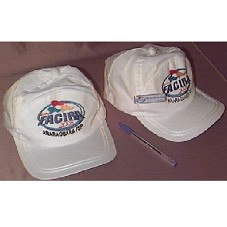 DOIS BONÉS EM TECIDO BRANCO, TENDO BORDADO NA FRENTE, EM AZUL/VERMELHO/PRETO, 'EXPO FACIRA 2003 / ARARAQUARA/SP' E, AINDA, TRÊS BANDEIRAS EM AZUL, VERMELHO E AMARELO E UM CÍRCULO AZUL. ACOMPANHA UM BROCHE RETANGULAR, EM METAL PRATEADO, COM SÍMBOLO DA FEIRA E A INSCRIÇÃO 'EXMO. LUIZ INÁCIO LULA DA SILVA / PRESIDENTE DA REPÚBLICA'.