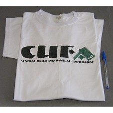 CAMISETA (TAM GG) EM MALHA BRANCA, DE MANGA CURTA. NA FRENTE, ESTAMPA EM PRETO E VERDE, COM A INSCRIÇÃO 'CUFA-MS / CENTRAL UNICA DAS FAVELAS - DOURADOS'.