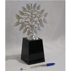 ESCULTURA(15,2X16X4 CM), EM PRATA 925, REPRESENTANDO A ÁRVORE DA VIDA. DO TRONCO PRINCIPAL SAEM DIVERSOS RAMOS, COM FOLHAS AO REDOR E FLORES NA PARTE INTERNA. NO CENTRO INFERIOR, A REPRESENTAÇÃO DE ADÃO E EVA, EM FIGURAS HUMANAS, COM UMA SERPENTE ENROSCADA NO TRONCO, CHEGANDO PRÓXIMA A EVA. POSSUI, AINDA, TRÊS POMBAS,UMA NA PARTE SUPERIOR E AS OUTRAS DUAS, UMA EM CADA LADO. FIXADA EM BASE TRAPEZOIDAL (10X8X8CM), NA COR PRETA. ACOMPANHA CARTÃO DO AGENTE E CERTIFICADO DE QUALIDADE E GARANTIA. ACONDICIONADA EM SACO DE CAMURÇA BEGE, COM NOME DO FABRICANTE 'IZTA'.