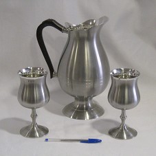 CONJUNTO DE UMA JARRA (28 CM E CAPACIDADE= 2150ML) E SEIS TAÇAS (17,5 CM E CAPACIDADE=350ML) CONFECCIONADOS EM ESTANHO. JARRA POSSUI ALÇA EM MADEIRA ESCURA. ACONDICIONADOS EM ESTOJO DE MADEIRA, CONTENDO NA TAMPA PLACA METÁLICA COM A INSCRIÇÃO 'PARA O PRESIDENTE DA REPÚBLICA LUIZ INÁCIO LULA DA SILVA / A UNIVERSIDADE FEDERAL DE SÃO JOÃO DEL REI (UFSJ) REGISTRA, NESTA DATA, SEU AGRADECIMENTO PELO APOIO SEM PRECEDENTES DE VOSSA EXCELÊNCIA À EDUCAÇÃO BRASILEIRA, EM ESPECIAL ÀS INSTITUIÇÕES FEDERAIS DE ENSINO SUPERIOR. DIVINÓPOLIS, 10 DE AGOSTO DE 2010 / CAMPUS CENTRO OESTE DONA LINDU'.