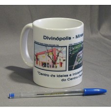 CANECA (9,5X8X8 CM) EM CERÂMICA BRANCA, COM ALÇA LATERAL. POSSUI TRÊS FOTOGRAFIAS ESTAMPADAS, DA CIDADE DE DIVINÓPOLIS-MG, E A INSCRIÇÃO 'DIVINÓPOLIS - MINAS GERAIS / CENTRO DE IDEIAS E INICIATIVAS QUE FAZEM O PROGRESSO DO CENTRO-OESTE MINEIRO'.