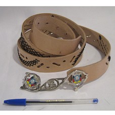 CINTO MASCULINO CONFECCIONADO EM COURO CLARO, COM DETALHES EM COSTURA PRETA. POSSUI FIVELA EM METAL PRATEADO, NO FORMATO DO MAPA DO RIO GRANDE DO SUL, COM O BRASÃO DO ESTADO.