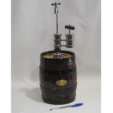 MINI TONEL (42X15X15 CM) PARA CACHAÇA OU CHOPP, BARRIL DE MADEIRA, COM BOMBA E TORNEIRA EM METAL PRATEADO, FIXADA NA PARTE SUPERIOR DO BARRIL. NA PARTE FRONTAL, PLACA METÁLICA COM A LOGOMARCA DO 'EMPÓRIO PINGUIM'. NA PARTE SUPERIOR DO BARRIL, A INSCRIÇÃO 'PINGUIM / RIB. PRETO / 1936'.