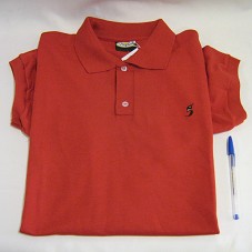 CAMISA PÓLO (TAM G), NA COR VERMELHA, DE MANGA CURTA. NA FRENTE, BORDADO EM PRETO E AMARELO, DESENHO ESTILIZADO DE UM PINGUIM. PRÓXIMO À BARRA, 'PINGUIM / RIBEIRÃO PRETO'.