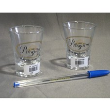 CONJUNTO DE DOIS COPOS PARA CACHAÇA (7X5,3X5,3 CM). NA PART FRONTAL, LOGOMARCA DO 'EMPÓRIO PINGUIM', E AI NSCRIÇÃO 'RIBEIRÃO PRETO'. POSSUEM ETIQUETA COM CÓDIGO DE BARRA E INSCRIÇÃO 'CP. CARPANA'. ACONDICIONADOS EM SACOLA DE TNT BRANCO, COM MESMA ESTAMPA NA FRENTE.