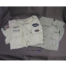 DUAS CAMISAS (TAM GG E EX) EM TECIDO CLARO ESVERDEADO, DE MANGA COMPRIDA E COM BOLSOS FRONTAIS. NA MAIS CLARA, BORDADOS COM A INSCRIÇÃO 'PNPDPA / PRESIDENTE LULA / PESCADOR ESPORTIVO' E, NAS MANGAS, 'ITAIPU BINACIONAL' E LOGOTIPO. NA SEGUNDA, 'MACUCO SAFARI'.