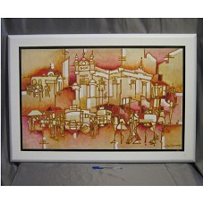 QUADRO (65X95 CM) COM MOLDURA PINTADA DE BRANCO. EMOLDURA PINTURA (50X80 CM), EM TONS DE VERMELHO MARROM, SOBRE TELA COLADA EM EUCATEX, MOSTRANDO PERSPECTIVA DO PRÉDIO DO 'DCE', DA UNIVERSIDADE FEDERAL DE JUIZ DE FORA. NO CANTO INFERIOR DIREITO, ASSINATURA DO ARTISTA 'G GUEDES'. NA PARTE POSTERIOR, A INSCRIÇÃO 'AV. GETÚLIO VARGAS - J.FORA / PRÉDIO DO D.C.E. / GERSON GUEDES 2010 / ACRÍLICA SOBRE TELA / [email protected] / 032 99548412'.