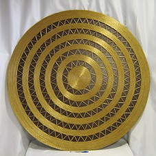 MANDALA (120X120 CM) CONFECCIONADA EM CAPIM-DOURADO. PAINEL FIXADO EM BASE DE MADEIRA ESCURA, COM UM FURO NA PARTE POSTERIOR, PARA FIXAÇÃO EM PAREDE.