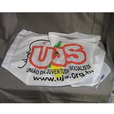 BANDEIRA (74X94 CM) EM TECIDO BRANCO, COM LOGOMARCA DA 'UNIÃO DA JUVENTUDE SOCIALISTA', E A INSCRIÇÃO 'WWW.UJS.ORG.BR'.