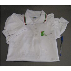 CAMISA PÓLO (TAM GG), NA COR BRANCA, DE MANGA COMPRIDA. NA FRENTE, LOGOMARCA DO 'IF / INSTITUTO FEDERAL PIAUÍ'. TECIDO POSSUI MARCAÇÃO DE '100 ANOS DA REDE FEDERAL DE EDUCAÇÃO PROFISSIONAL E TECNOLÓGICA 1909-2009'.