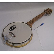 BANJO (65 CM) CONFECCIONADO EM MADEIRA, COM CORPO MONTADO EM UM PANDEIRO (SEM AS MOEDAS).