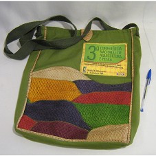 SACOLA (38X28,5 CM), DE ALÇA COMPRIDA, EM TECIDO VERDE, COM BOLSO FRONTAL COLORIDO, CONFECCIONADO EM COURO DE PEIXE. NA FRENTE, A INSCRIÇÃO '3ª CONFERÊNCIA NACIONAL DE AQUICULTURA E PESCA / CONSOLIDAÇÃO DE UMA POLÍTICA DE ESTADO PARA O DESENVOLVIMENTO SUSTENTÁVEL DA AQUICULTURA E PESCA. / BRASÍLIA/DF, 30 DE SETMBRO A 2 DE OUTUBRO DE 2009.'. POSSUI LOGOMARCA DO GOVERNO FEDERAL E NOME DO 'MINISTÉRIO DA PESCA E AQUICULTURA'.