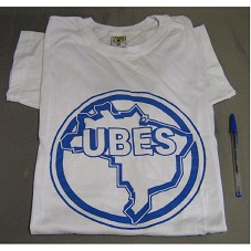 CAMISETA (TAM M) EM MALHA BRANCA, DE MANGA CURTA. NA FRENTE, ESTAMPA NA COR AZUL CONTENDO A INSCRIÇÃO 'UNIÃO BRASILEIRA DOS ESTUDANTES SECUNDARISTAS', E LOGOMARCA.