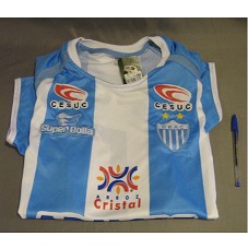 CAMISA DE FUTEBOL OFICIAL (TAM GG) DO TIME 'CLUBE RECREATIVO ATLÉTICO CATALANO', DA CIDADE DE CATALÃO-GO. CAMISA COM LISTRAS VERTICAIS NAS CORES AZUL E BRANCO, DE NÚMERO '10'.