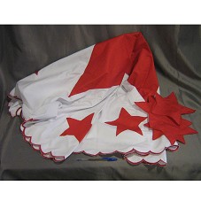 TOALHA DE MESA, DE FORMATO REDONDO, NA COR BRANCA. POSSUI UMA ESTRELA GRANDE E VERMELHA, AO CENTRO; E OUTRAS MENORES PRÓXIMO À BARRA. ACOMPANHA QUATRO ESTRELAS CONFECCIONADAS EM TECIDO VERMELHO. ACONDICIONADA EM CAIXA DE MADEIRA PINTADA DE BRANCO, COM DETALHES E UMA ESTRELA EM VERMELHO. ACOMPANHA FOLDER DO 'CENTRO DE CONVIVÊNCIA DO PEQUENO APRENDIZ'.