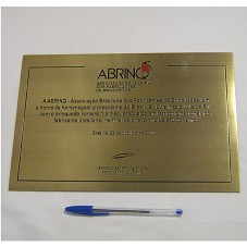 PLACA (20X29,7 CM) EM METAL DOURADO, COM FUNDO AVELUDADO. POSSUI A INSCRIÇÃO 'ABRINQ / ASSOCIAÇÃO BRASILEIRA DOS FABRICANTES DE BRINQUEDOS / A ABRINQ ... TEM A HONRA DE HOMENAGEAR O PRESIDENTE DO BRASIL, SR. LUIZ INÁCIO LULA DA SILVA, COM O BRINQUEDO NÚMERO 1 BILHÃO, PRODUZIDO EM TERRITÓRIO NACIONAL, POR FABRICANTE BRASILEIRO, NO FINAL DO OITAVO ANO DE SEU GOVERNO. BRASÍLIA, 22 DE OUTUBRO DE 2010. / SYNÉSIO BATISTA DA COSTA / PRESIDENTE DA ABRINQ'. ACONDICIONADA EM ESTOJO FORRADO DE VELUDO VERMELHO.