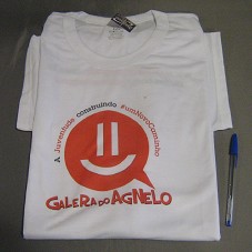 CAMISETA (TAM GG) EM MALHA BRANCA, DE MANGA CURTA. NA FRENTE, ESTAMPA NA COR VERMELHA CONTENDO A INSCRIÇÃO 'A JUVENTUDE CONSTRUINDO UM NOVO CAMINHO / GALERA DO AGNELO'. ATRÁS, 'WWW.GALERADOAGNELO.COM.BR / TWITTER.COM/GALERADOAGNELO'.