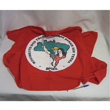 BANDEIRA (67X94 CM) EM TECIDO VERMELHO, TENDO AO CENTRO, DOS DOIS LADOS, CÍRCULO BRANCO COM A LOGOMARCA DO 'MOVIMENTO DOS TRABALHADORES RURAIS SEM TERRA'.